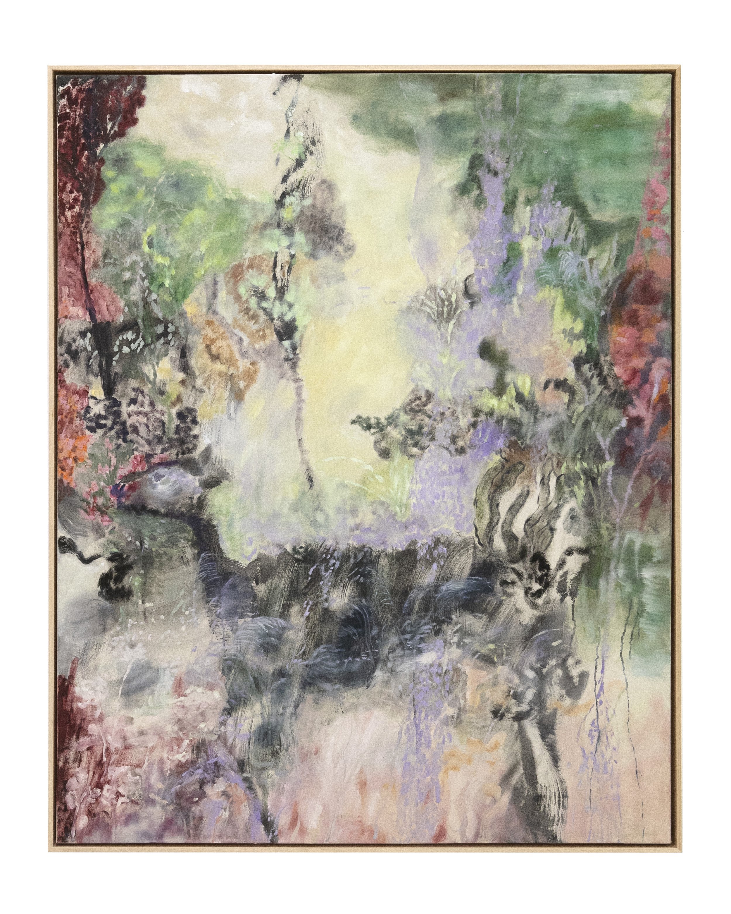Oil on canvas. 61.5 x 49.5 inches floated in maple frame. 2026.