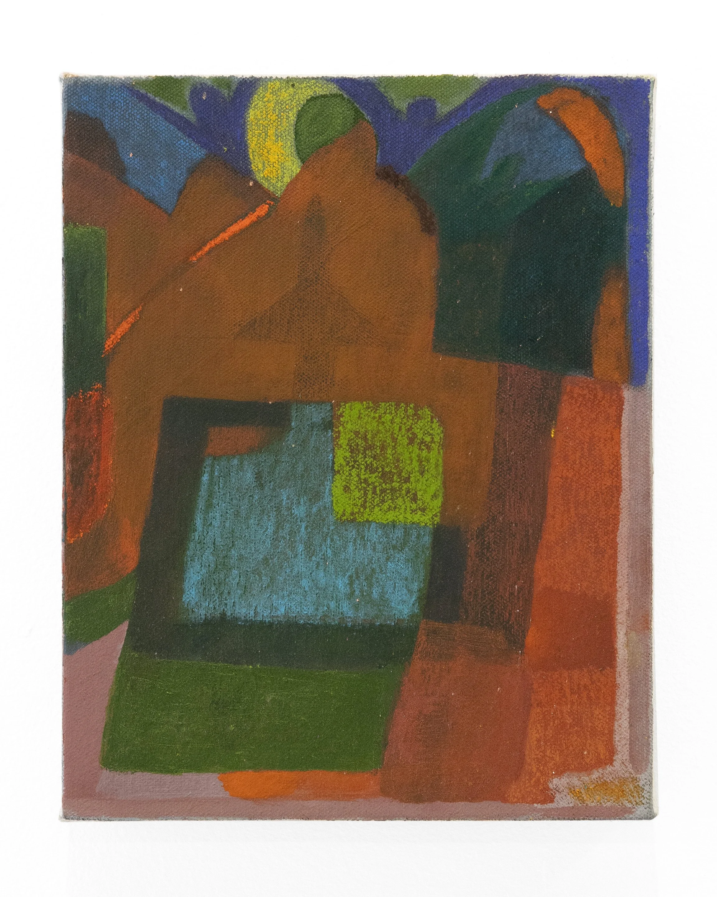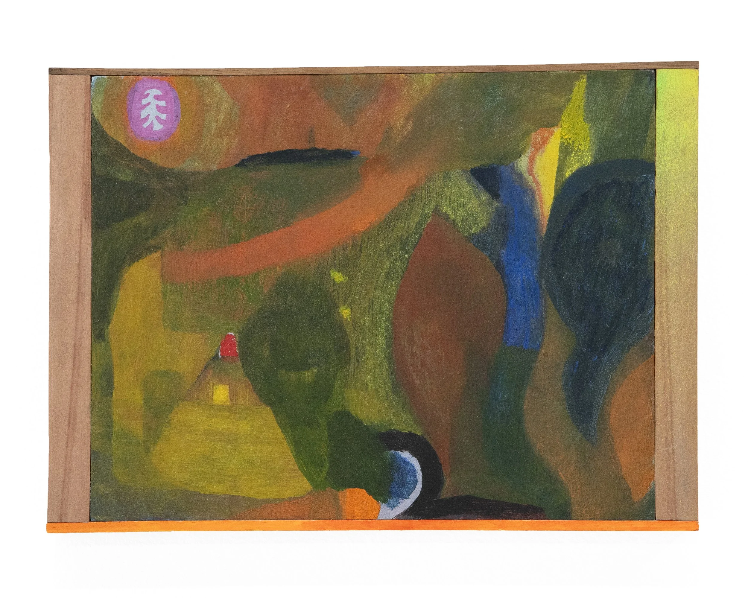 Oil pastel, acrylic, gouache on panel.